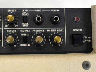 サウンドにこだわるべくスピーカーは12"仕様のUSA製「V12-75」を1基搭載、スプリング・リバーブ・ユニットもUSA製Accutronics