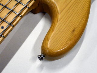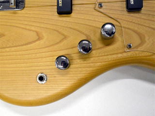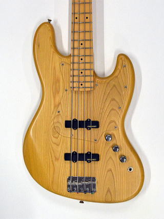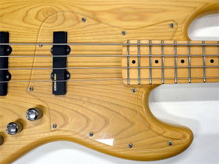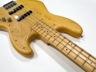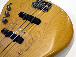 ナチュラルカラーのボディにアクリル製のクリア・ピックガード、さらにコントロールはボディに直付けで、どこか高級コンポーネント・ベースのような雰囲気のベースです。