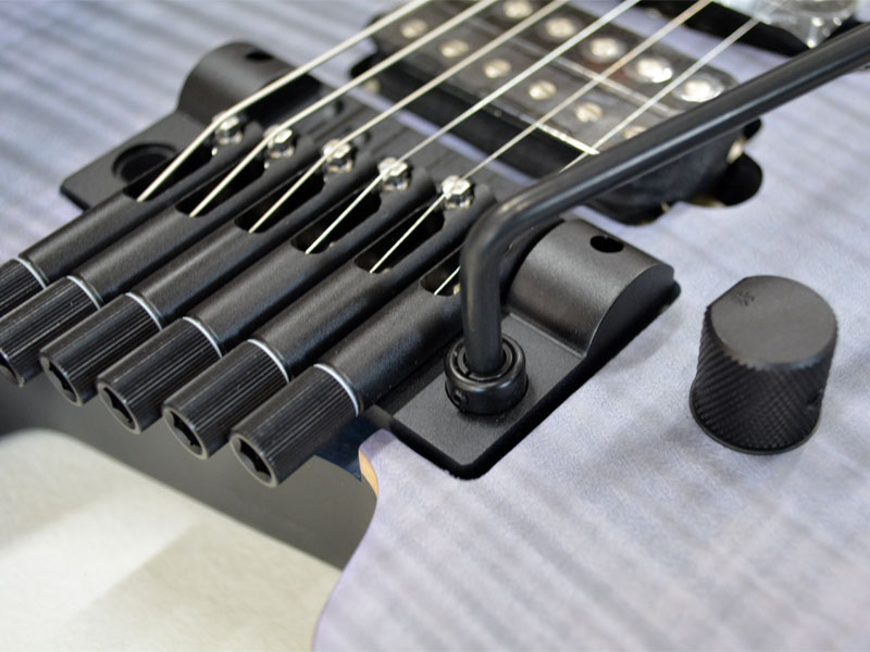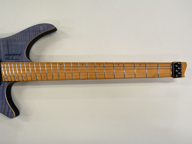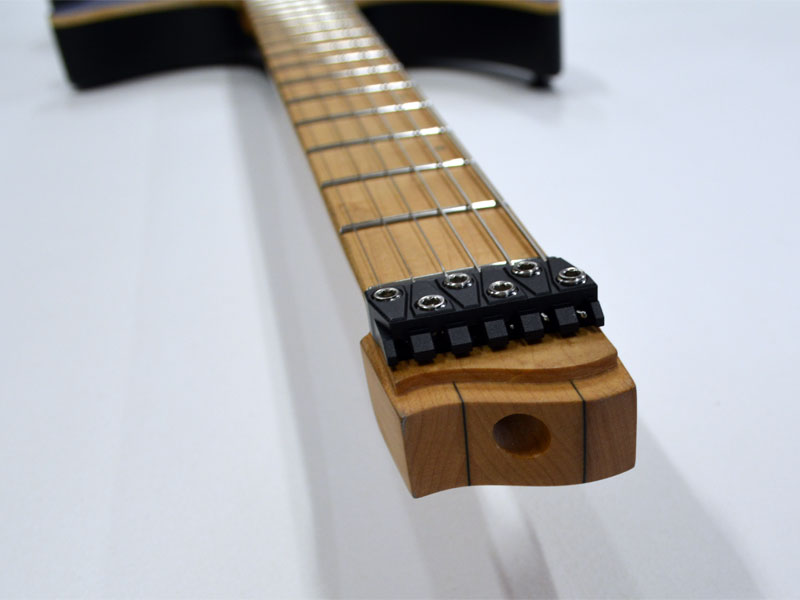 フレットにはJescar 51100ステンレス鋼フレットワイヤー(ゼロフレットの場合は57110)を採用しブライトで明瞭なアタック感が特徴です。また、ファンフレット(マルチスケール)を採用しているので心地良いローエンドとしっかりとした音程感が魅力です。